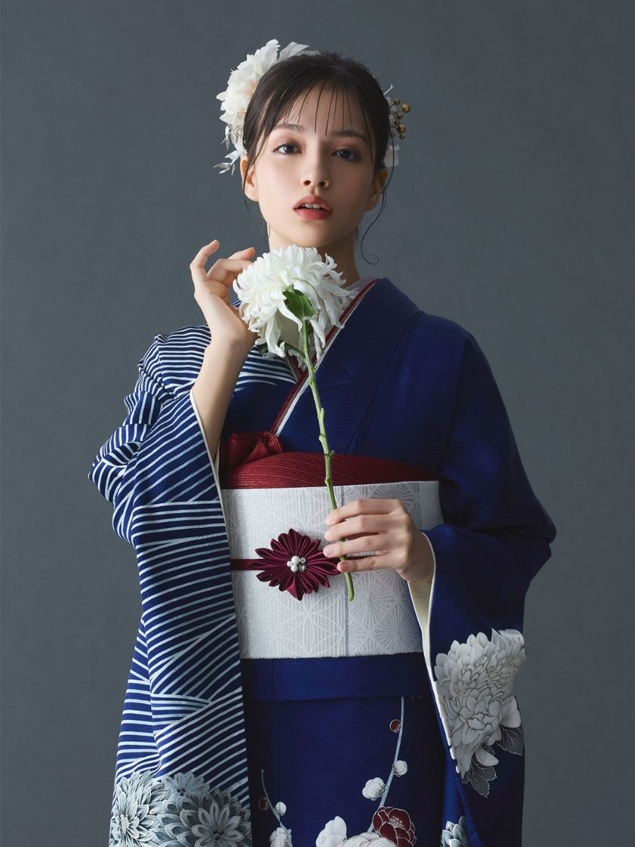 ※足袋は着付け道具セットに含まれます。 ※小物:伊達衿・帯揚げ・帯締めは同色でセットになります。 ※バッグと草履は同色でセットになります。 ※半衿・伊達衿についてはモデル着用のものとは異なる場合がございます。 ※モデル着用の半衿・バッグ・草履等には、セットに含まれていない別売りのものもございます。 髪飾りは別売りです。予めご了承ください。
