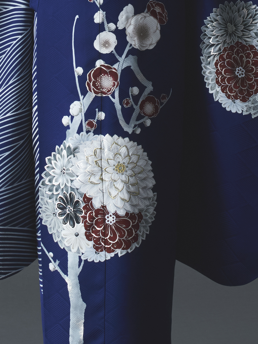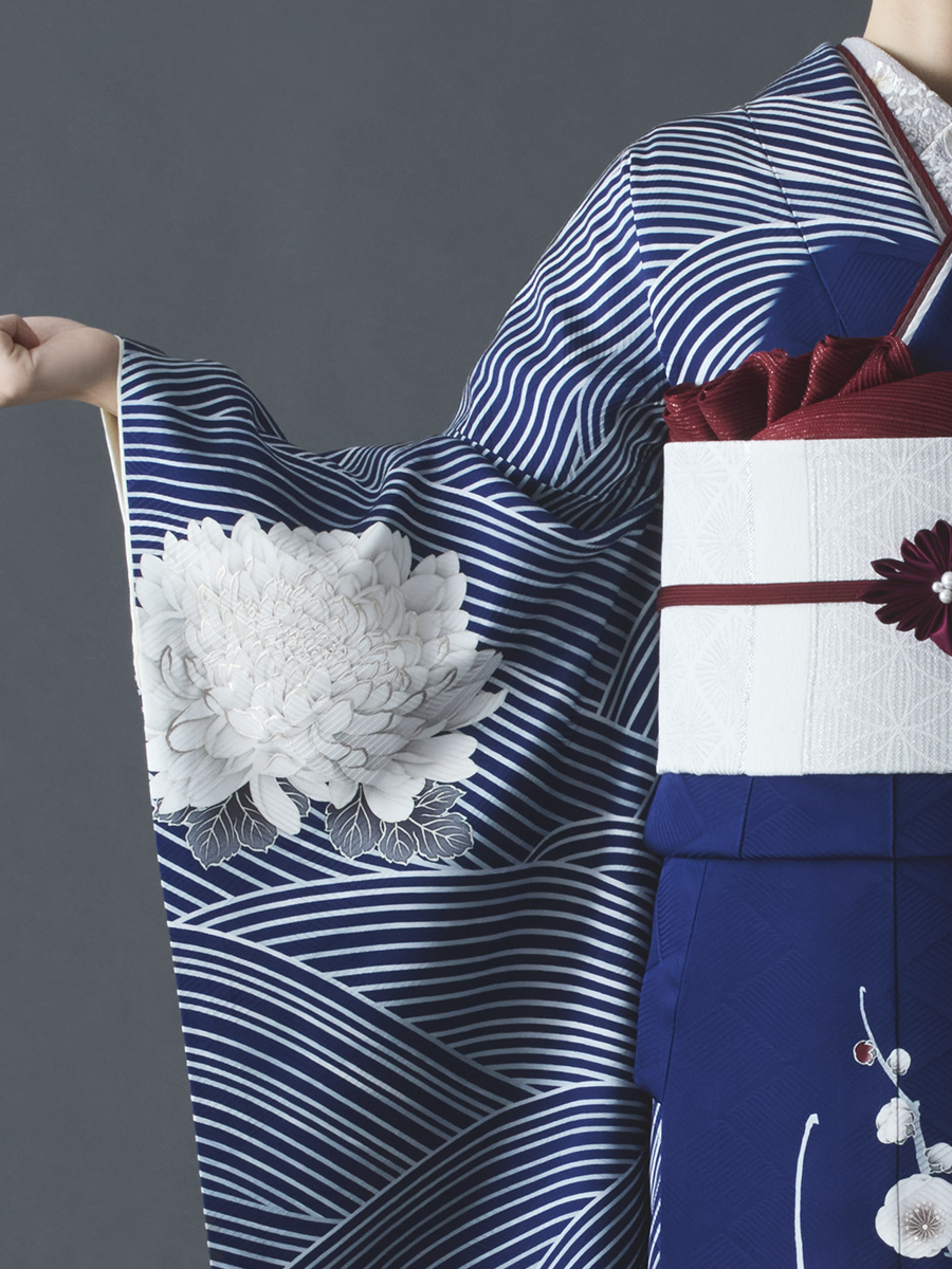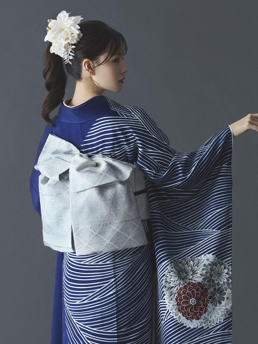 正絹振袖レンタルセット 立梅に波(紺)