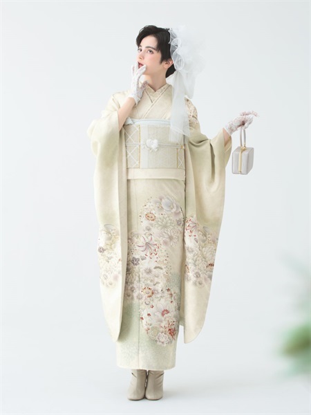 ※足袋は着付け道具セットに含まれます。 ※小物:伊達衿・帯揚げ・帯締めは同色でセットになります。 ※バッグと草履は同色でセットになります。 ※半衿・伊達衿についてはモデル着用のものとは異なる場合がございます。 ※モデル着用の半衿・バッグ・草履等には、セットに含まれていない別売りのものもございます。 髪飾りは別売りです。予めご了承ください。