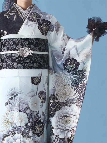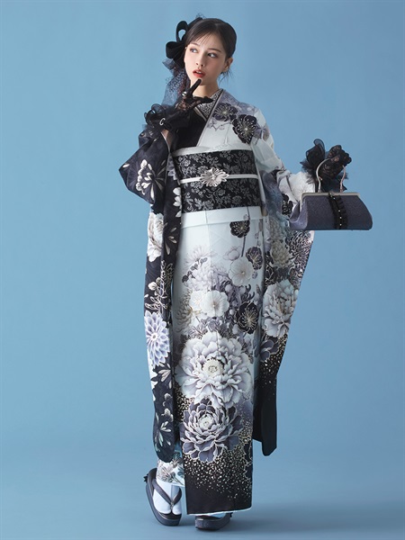 正絹振袖レンタルセット 月影(モノトーン)