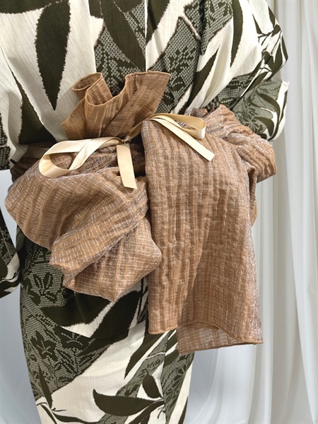C381_JS-5 絞り風竹 カーキ【二部式浴衣単品】