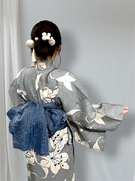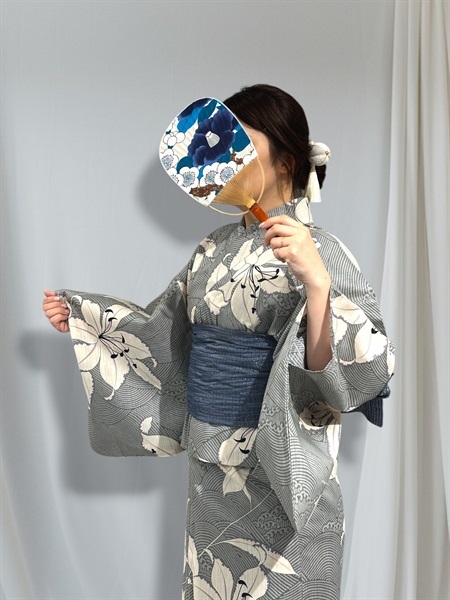 C381_JS-8 百合 グレージュ【二部式浴衣単品】